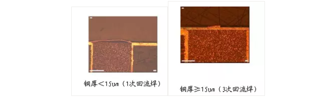 D、對(duì)于樹脂與銅分層的問題,我們發(fā)現(xiàn)孔表面的銅厚厚度大于15um時(shí),此類樹脂與銅分層的問題可以得到極大的改善。(如下圖)